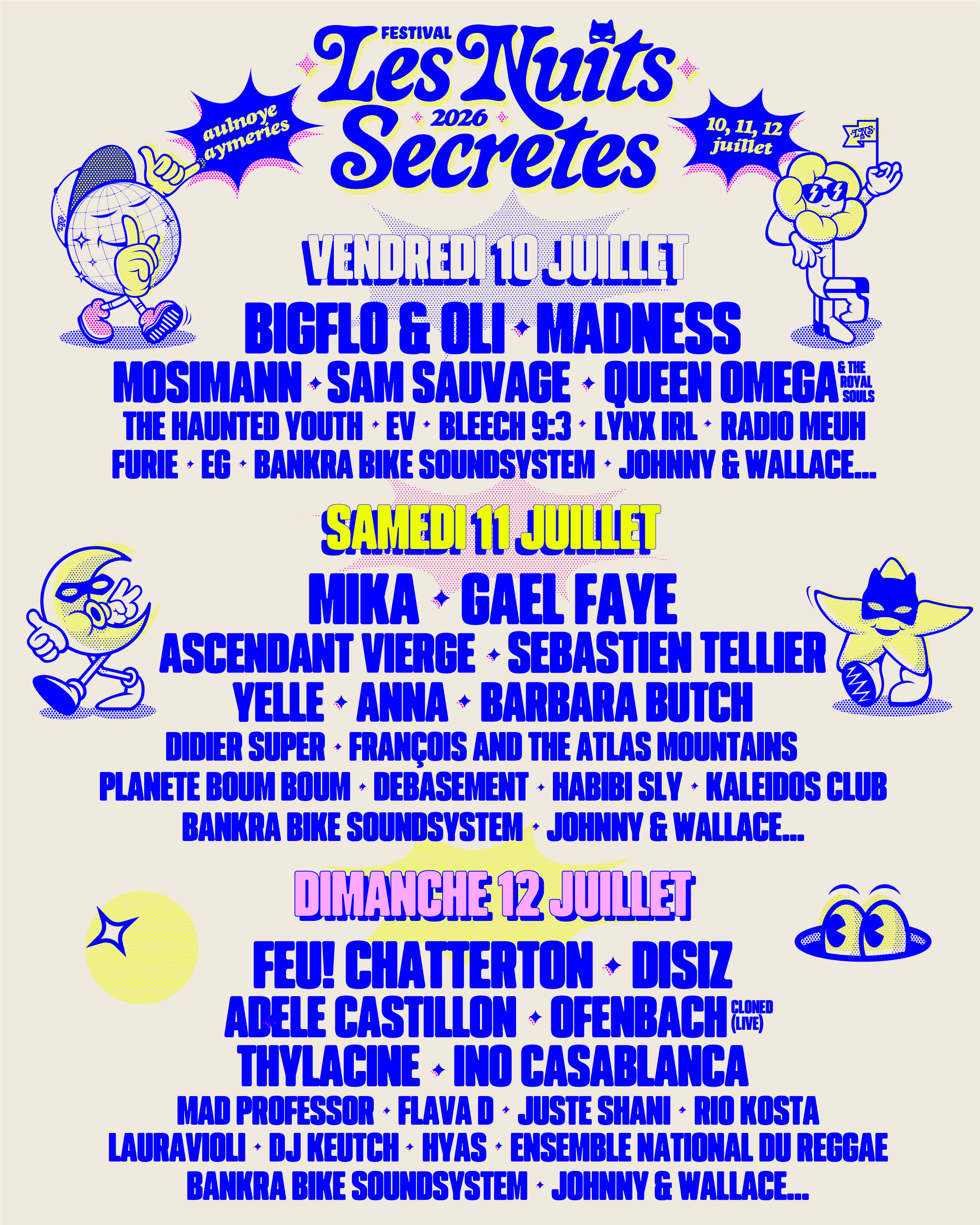 Fidèle à son ADN, Les Nuits Secrètes affirme son rôle de défricheur artistique. À contre-courant des algorithmes et des programmations standardisées, le festival défend la rencontre, la surprise et la curiosité. Indie rock belge, grime britannique, astro techno bruxelloise, dub jamaïcain, néo-soul française, house new-yorkaise, influences latines, techno breaks, DJ sets à vélo ou sono mobile reggae… L’édition 2026 célèbre la pluralité des scènes et la liberté des formes.