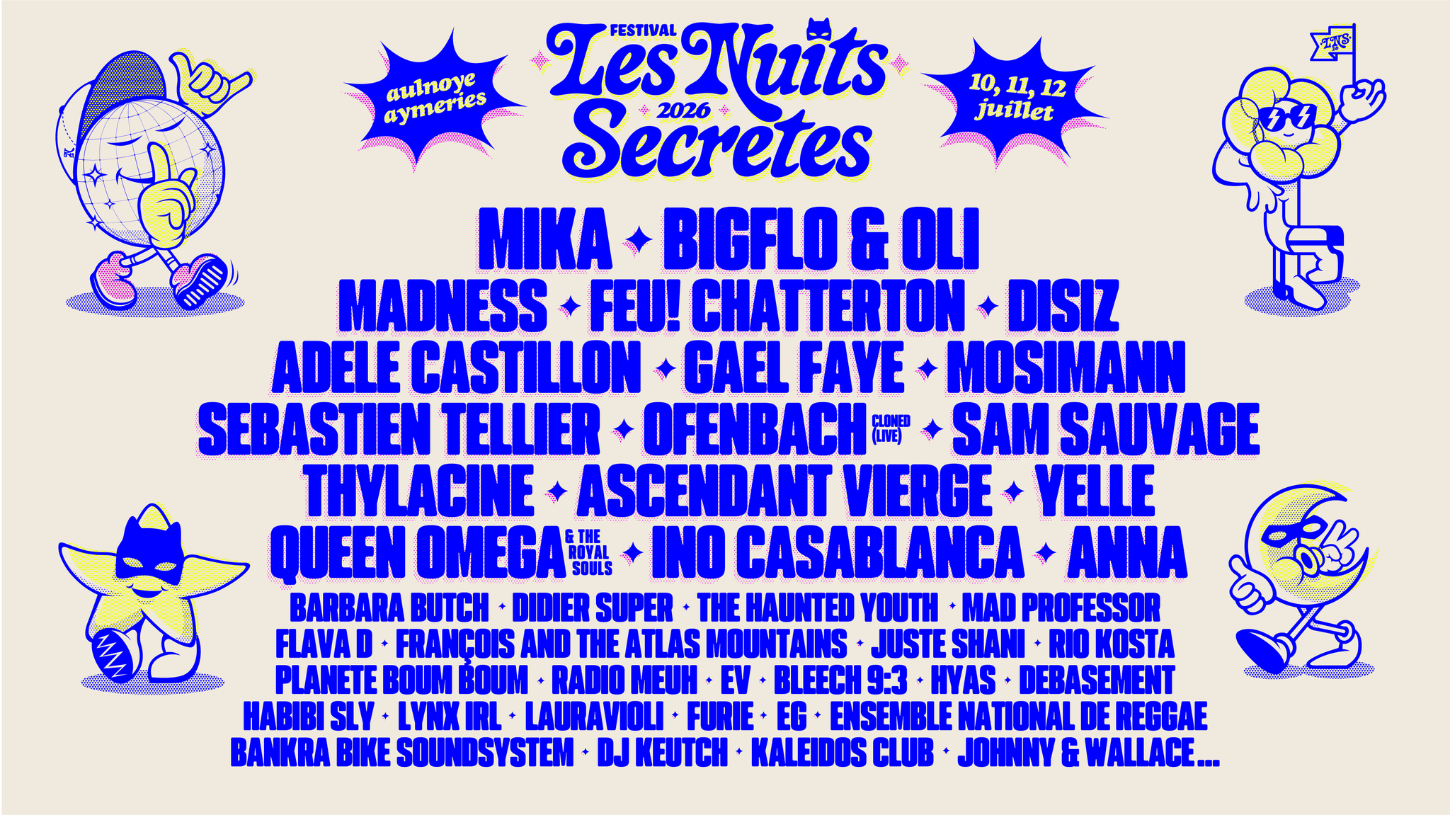 La 24e édition des Nuits Secrètes se tiendra les 10, 11 et 12 juillet 2026 à Aulnoye-Aymeries. L’organisation présente les premiers noms à l’affiche, ainsi qu’une mascotte : elle est plutôt rigolote, et comme son nom l’indique, c’est une nouvelle “Facette” qui s’ajoute aux mille et une autres que le festival possède déjà.